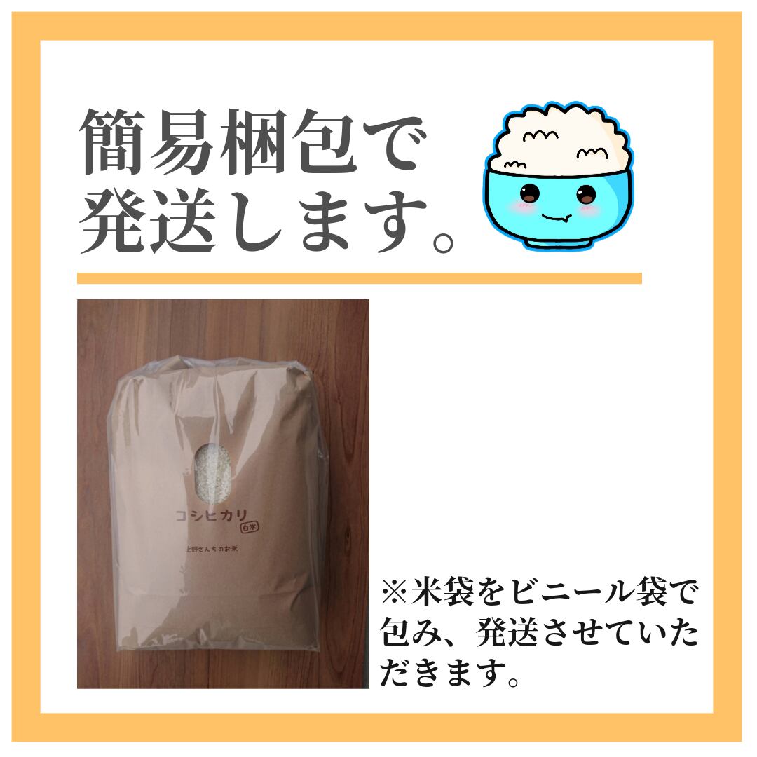米専用袋に詰め、ビニール袋で包んだ簡易包装で送らせていただきます。